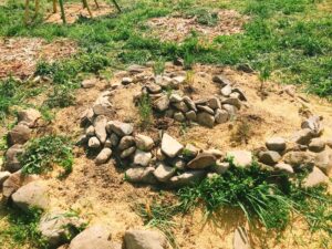 直径2mほどの渦巻き状に、小山のような植床をつくるものです。