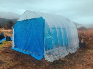 南風が強く、骨組みをがっちり作り、シートやビニールもなるべくしっかりと固定しましたが、強風でビニールが少し破損したことがあります。
