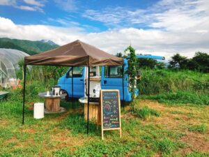 カフェを建てなくても、キッチンカーでブルーベリー農園でのスウィーツの提供をすることができます。